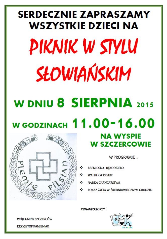 W dniu 8.08.2015r. ( sobota) organizujemy warsztaty dla dzieci na wyspie w Szczercowie